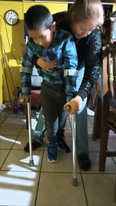 Dopo l’intervento, per Josué, sono iniziati lunghi mesi di riabilitazione fatti di esercizi quotidiani. All’inizio non riusciva a stare in piedi ma con tanta forza e costanza, pian piano, sono arrivati i primi miglioramenti e ha iniziato a camminare con un deambulatore.