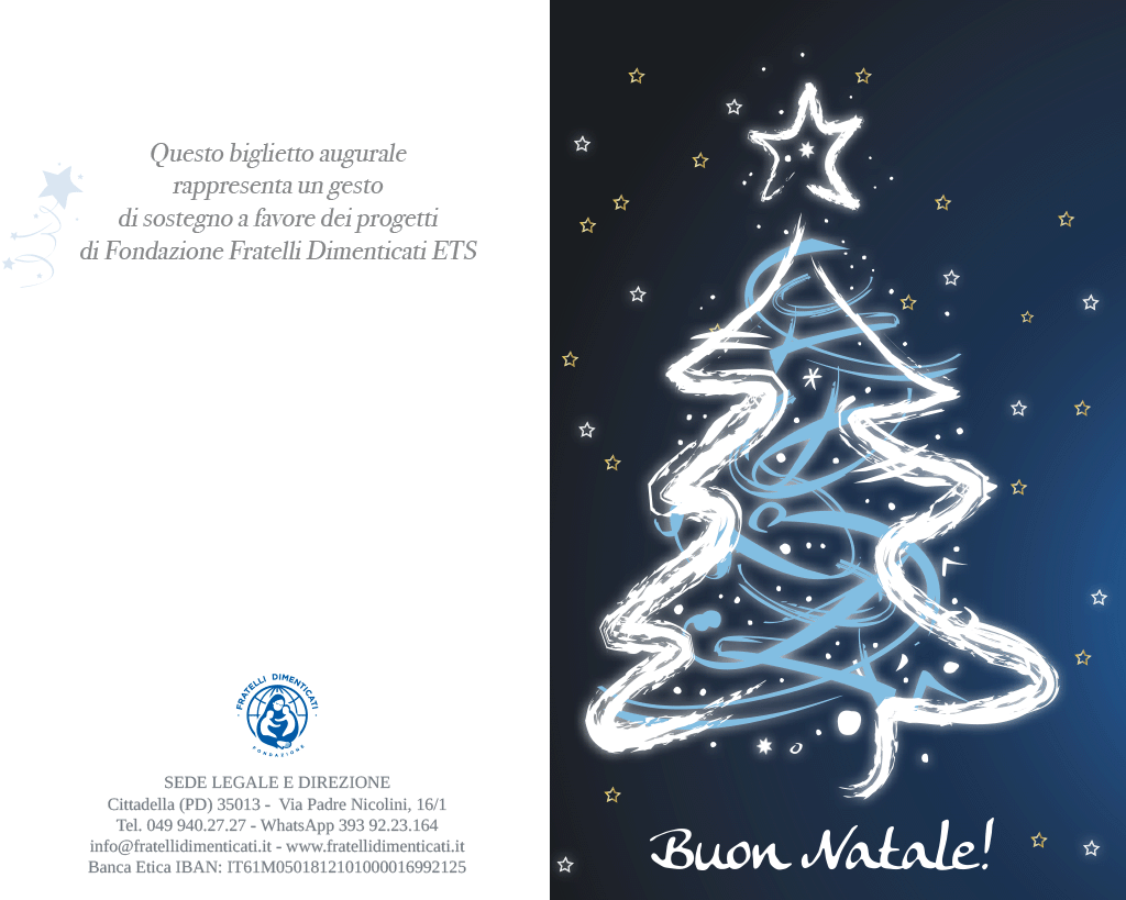 Questo biglietto augurale rappresenta un gesto di sostegno a favore dei progetti di Fondazione Fratelli Dimenticati ETS.