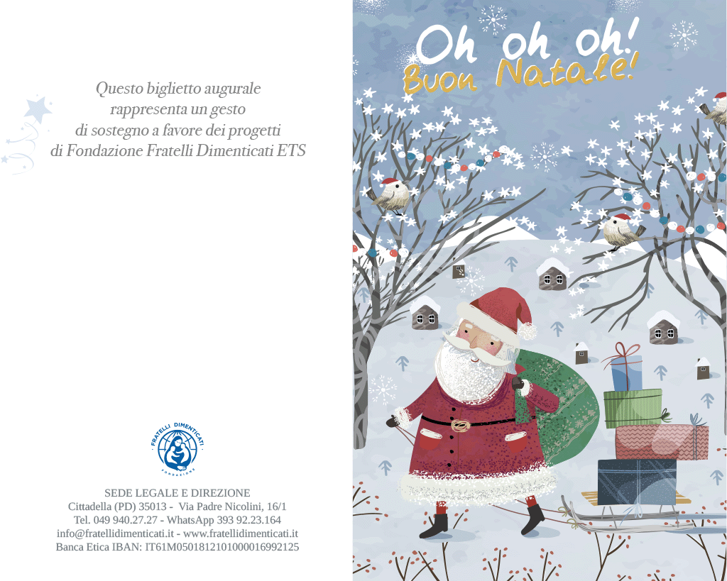 Questo biglietto augurale rappresenta un gesto di sostegno a favore dei progetti di Fondazione Fratelli Dimenticati ETS.