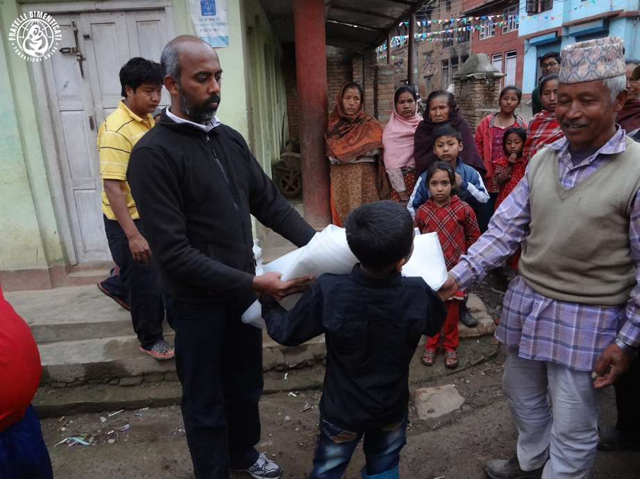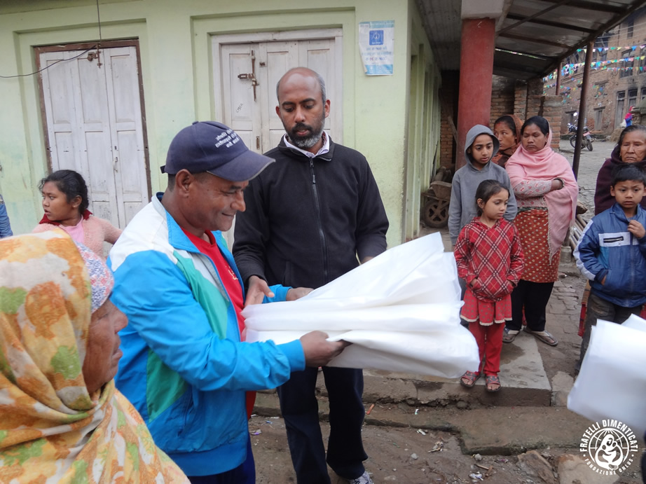 EmergenzeLa squadra di soccorso si è diretta ancora una volta a Lele (dove abbiamo distribuito cibo per 150 famiglie il primo giorno dopo il terremoto). È un villaggio remoto del distretto di Lalitpur e non ci sono strade percorribili per arrivarci. La nostra squadra, con l’aiuto degli abitanti del villaggio, ha identificato le famiglie più colpite ed ha distribuito riso, dhal, olio, riso, biscotti. Sono anche stati consegnati teloni per poter ricavare tende, in quanto molte delle loro case sono cadute. Alla fine delle nostre attività, le vittime di questo terremoto si sono rasserenate e radunate per ringraziare la squadra di soccorso.